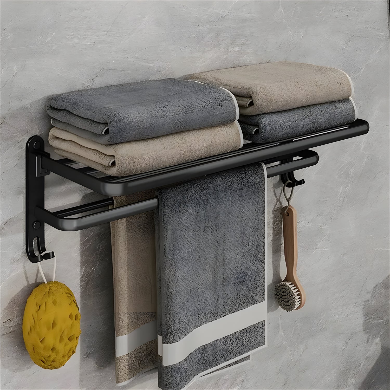 Foldable Multifunctional Bathroom Shelf - Durable Aluminum Rack - 40cm black