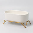White Ceramic Succulent Plant Pot with Stylish Gold Stand