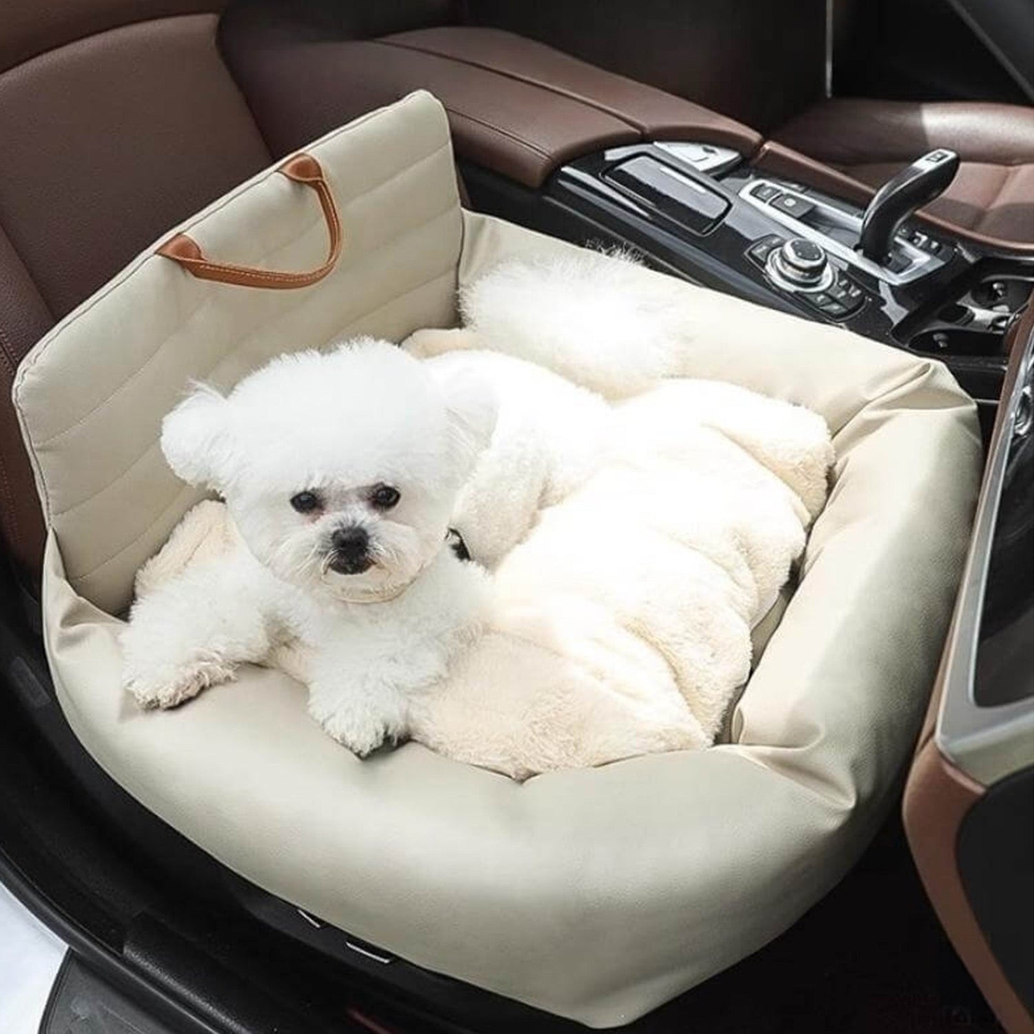 Faux Leather Dog Car Seat Bed – Waterproof, Secure & Comfortable - Biege / One size