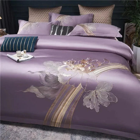 Reversible Violet Duvet Cover Set (Egyptian Cotton, 600 TC)