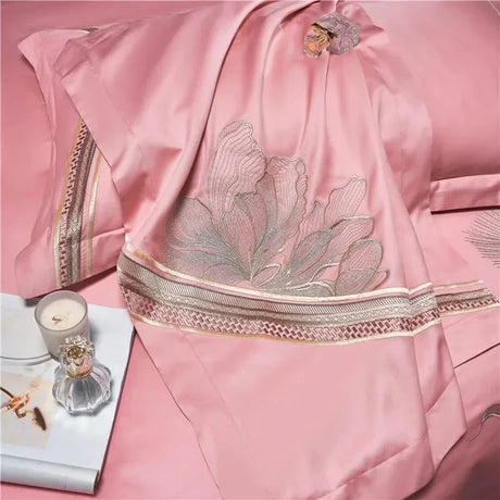 Millennia Coral Duvet Cover Set – 1000 TC Egyptian Cotton in Soft Pink with Diamond Texture