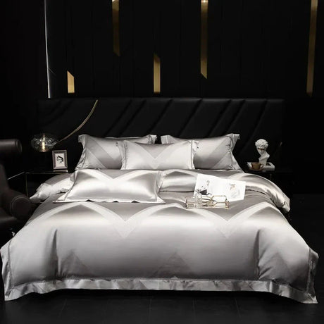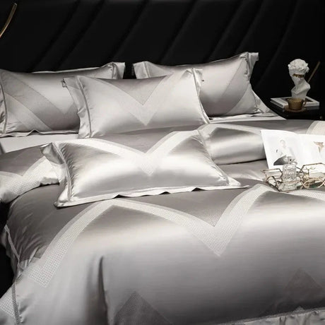 Platinum Triangle Duvet Cover Set – 1000 TC Egyptian Cotton in Sleek Silver Grey