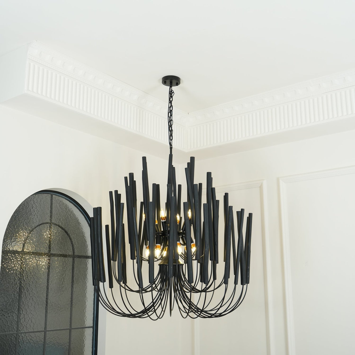 Bring natural elegance into your home with this tiered wooden chandelier, crafted from slender wood sticks arranged across gracefully curved iron arms. The layered design creates a stunning play of light and shadow, transforming any space with visual warmth and character.