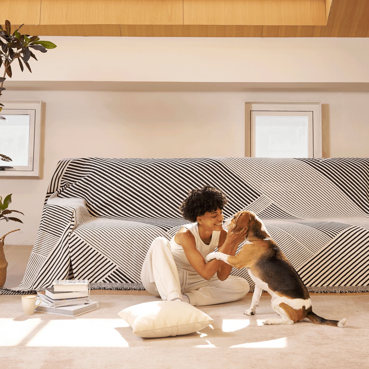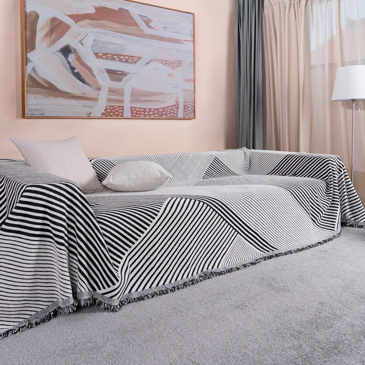 Black Geometric Reversible Sofa Cover - Modern, Stylish & Durable Sofa Protection