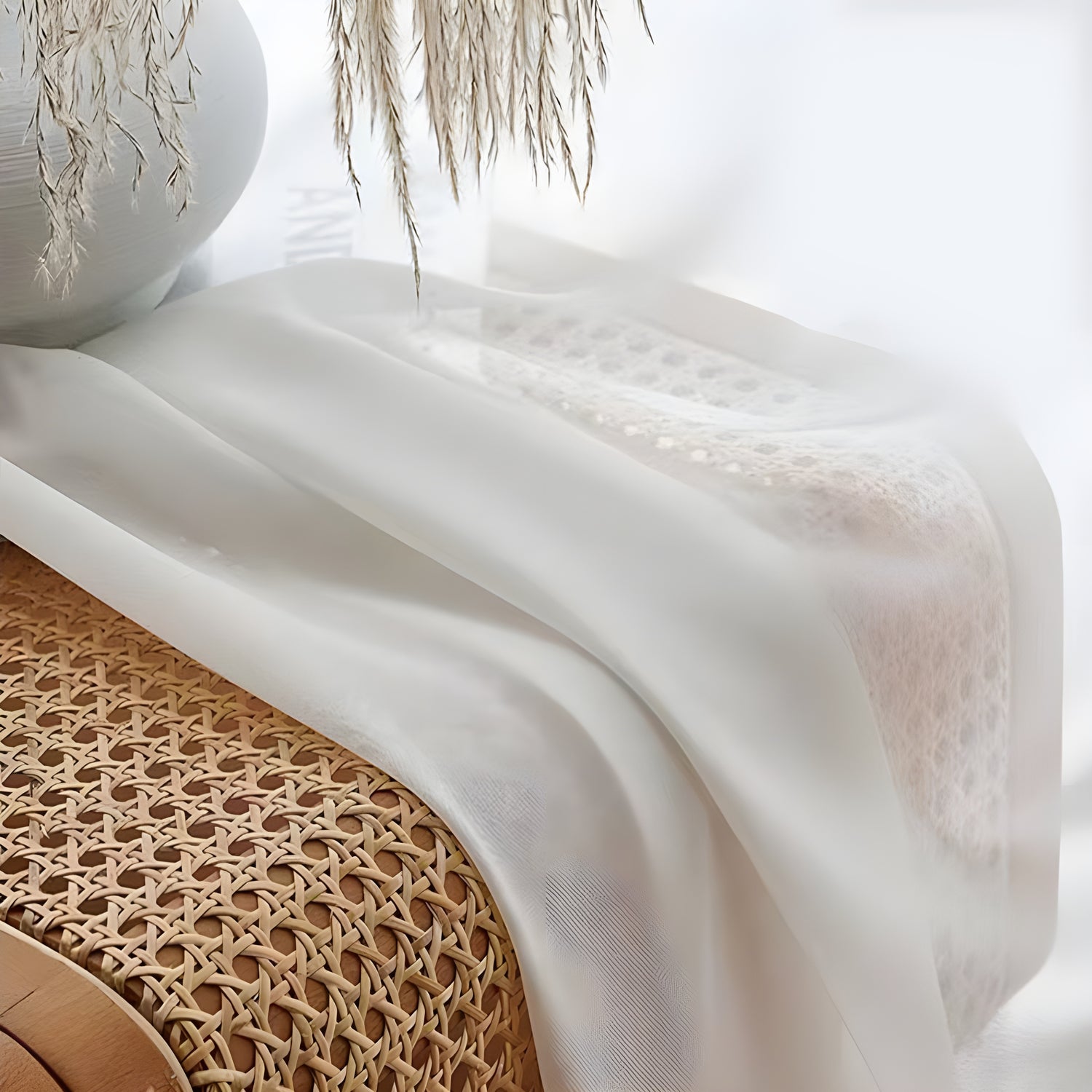 Elevate your home decor with these Solid White Luxurious Sheer Chiffon Curtains, adding a touch of sophistication and tranquility to your surroundings.