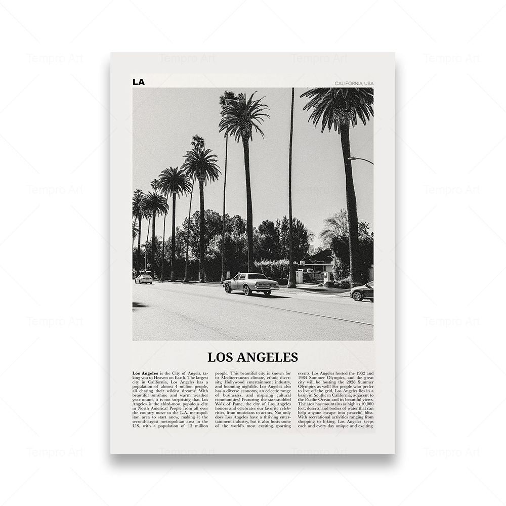 Monochrome Landscape Travel Poster - Modern Art Print Unframed - 13cmx18cm No framed / Los Angeles