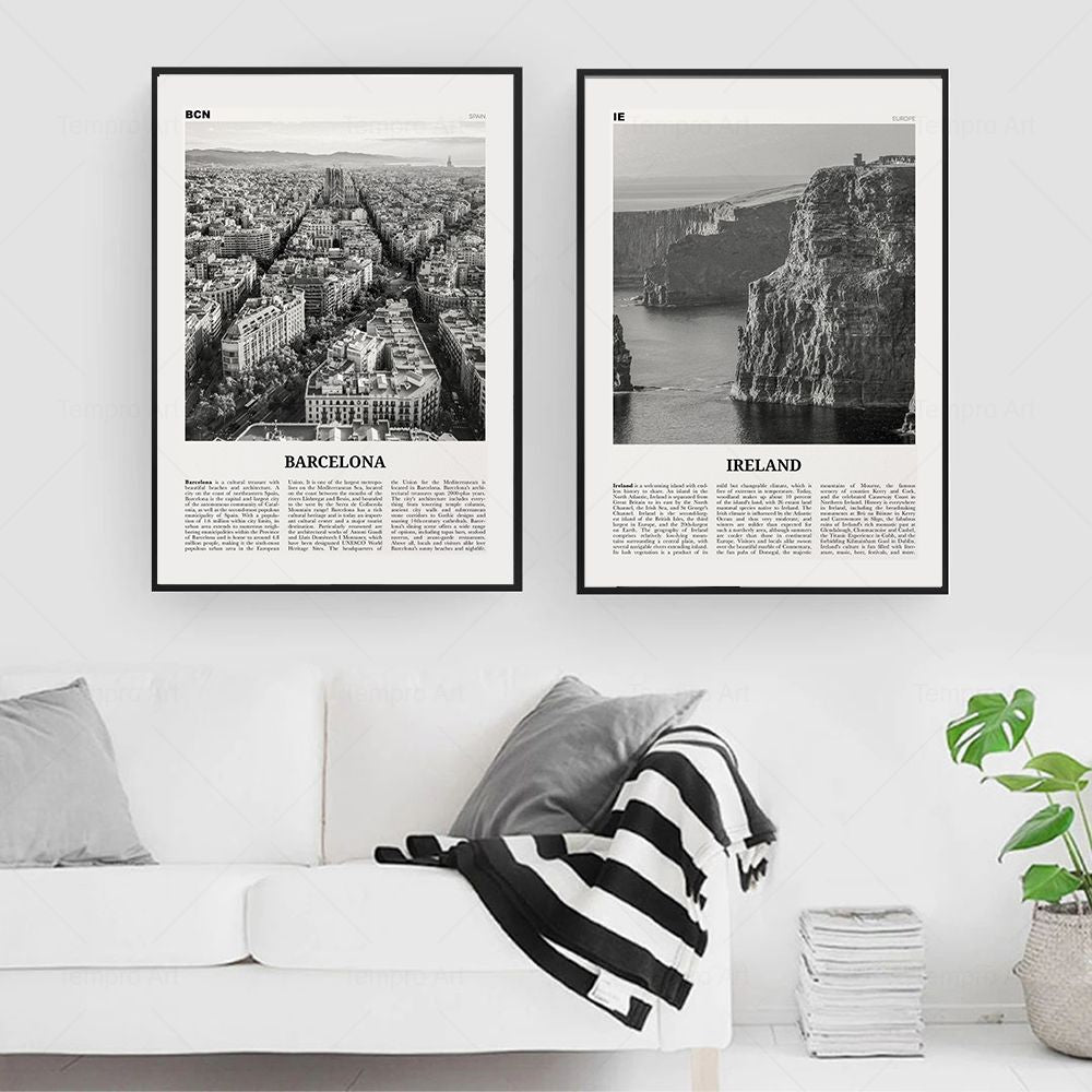 Enhance your space with the stunning Monochrome Landscape Travel Poster - Modern Art Print Unframed. This poster captures the essence of various breathtaking locations, allowing you to travel the world from the comfort of your home. It’s an ideal decorative piece for your living room, office, or any wanderlust-inspired area.
