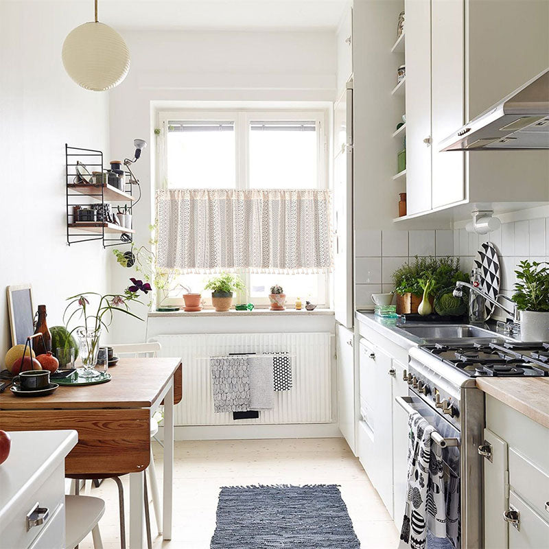 Lace Taseel Hollow-Out Tier Curtain in Cotton Linen Material