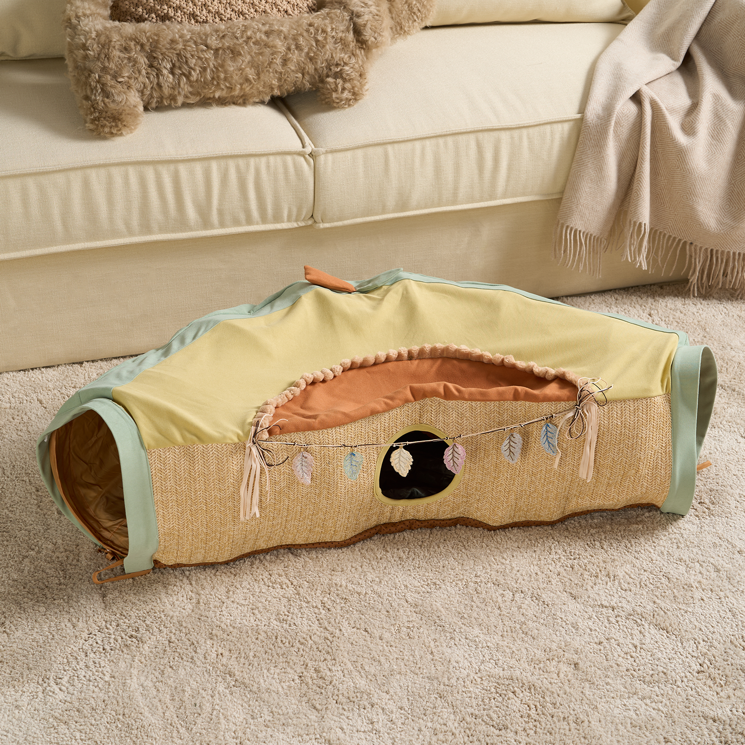 Give your cat a fun and cozy escape with the Purrfect Foldaway Tunnel Retreat. Designed for endless exploration, it features multiple entryways and interactive feather-shaped toys for nonstop entertainment.