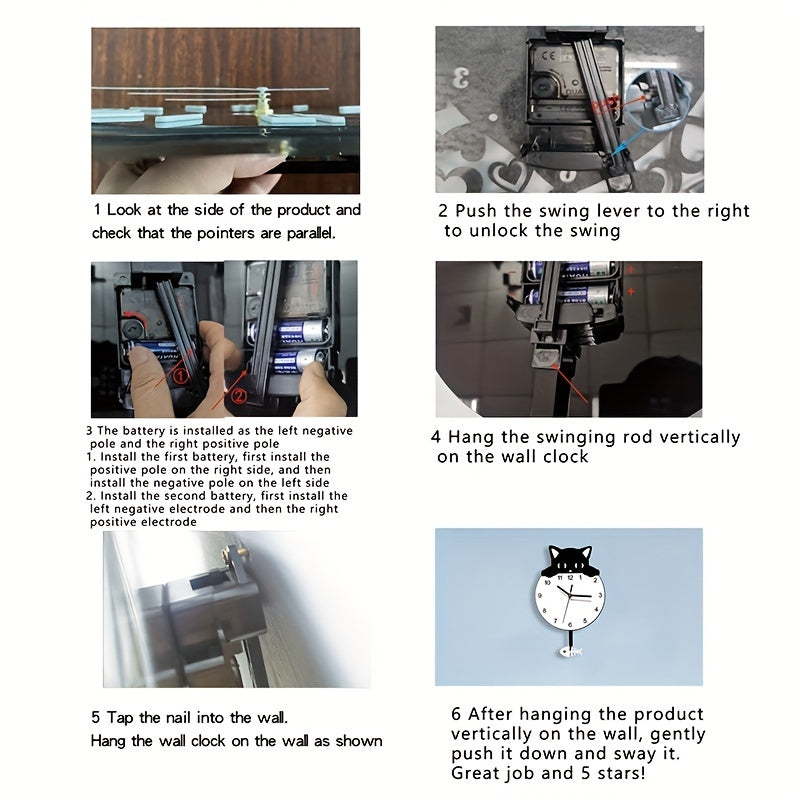 Purrfect Time Stylish Swinging Cat Wall Clock Modern Design