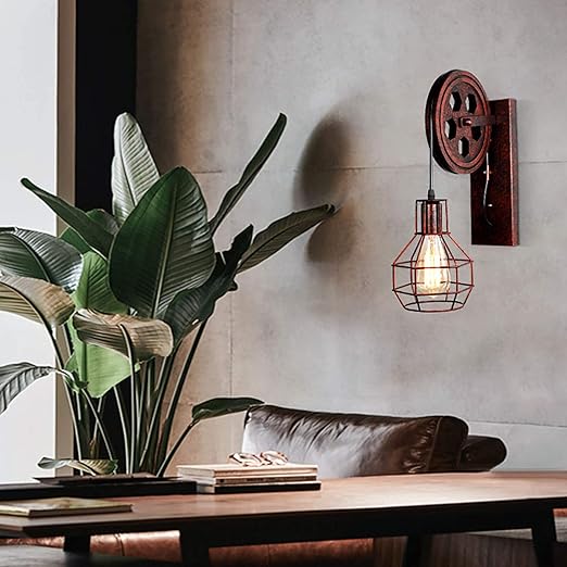 Vintage Wall Lamp with Pulley - Retro Industrial LED Sconce